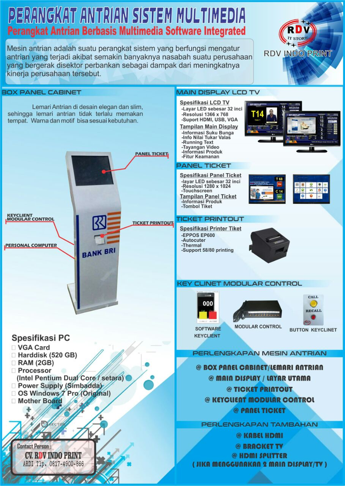 Mesin antrian sistem touchscreen bisa custom