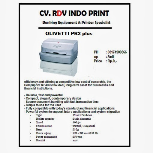 CV. RDV INDO PRINT banking equipment dan printer specialist